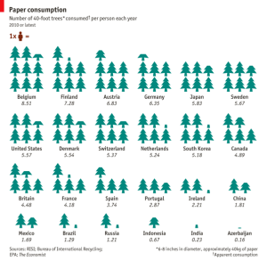 In the UK, every worker uses up the equivalent of 4.48 trees per year.
