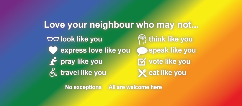 It focuses on the idea that ‘all are welcome’; inclusivity, with no exceptions.