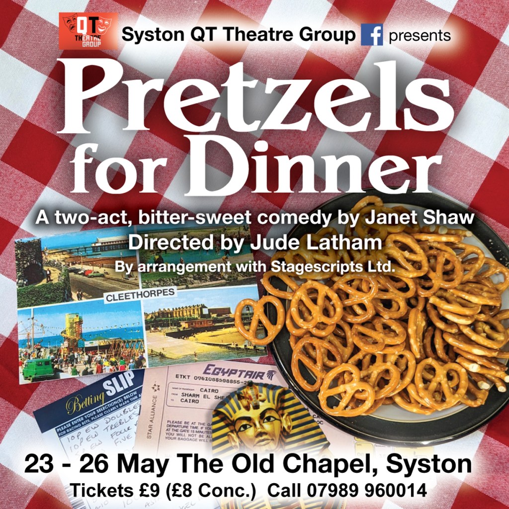 Pretzels for Dinner, by Janet Shaw is directed by our own Jude Latham. It’s ‘a bitter-sweet comedy looking at life through the eyes of Anne’ …married to Bill for thirty-five years, she devoted her adult life to being a wife, a mother, and her daily routine, like her weekly shop at Asda. As life goes on, can Anne remember dreams and ambitions?