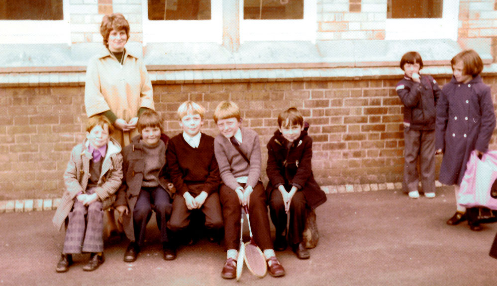 Fowey School 1975 – Miss Edwards? Matthew, Danny, Julian, Kenneth, and John?