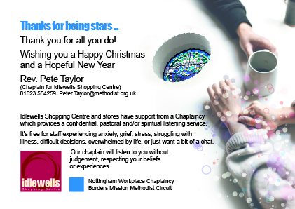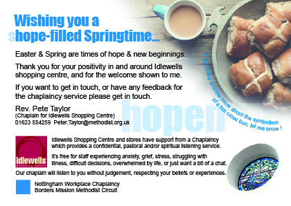 A pal of mine spends time as a chaplain at a midlands shopping centre. Yes, those hard-working shop workers might need respite or solace too.