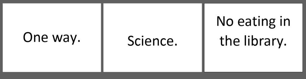 “Can you just do a simple ‘One Way’ sign for me?” Or, a sign to ‘Science’… or a ‘No eating in the library’ notice?